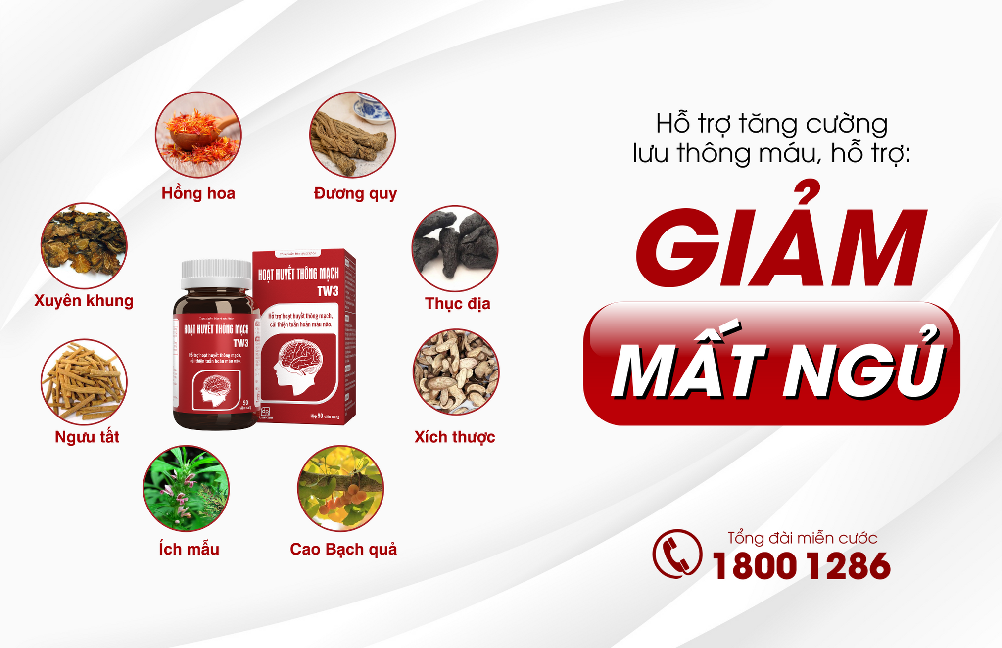 Hoạt Huyết Thông Mạch TW3 – Với thành phần chiết xuất từ 8 thảo dược, giúp hỗ trợ tăng cường lưu thông máu giúp giảm mất ngủ, đau đầu, trí nhớ kém.