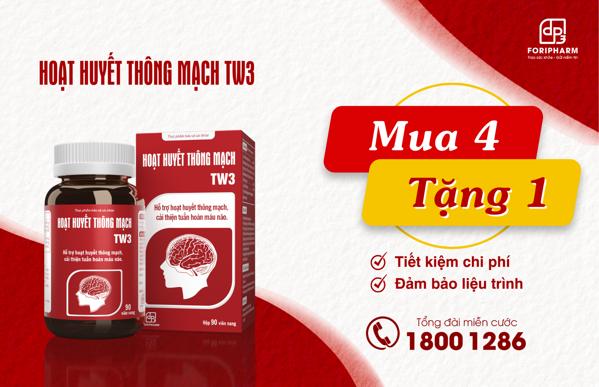 • Với mục đích hỗ trợ khách hàng đảm bảo liệu trình trên 3 tháng, đồng thời tiết kiệm chi phí cho khách hàng, Hoạt Huyết Thông Mạch TW3 đang có chương trình khuyến mãi: MUA 4 TẶNG 1, tính ra chi phí cho mỗi ngày sử dụng chỉ còn 9.600 đồng.